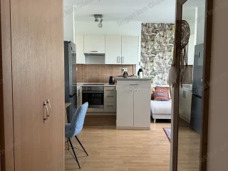 Eladó ingatlan Békásmegyeren. Óbuda méltán kedvelt Római part közeli frekventált, mégis nyugalmas életstílust biztosító részén, a Csillagkert Teraszház egy minden igényt kielégítő panorámás, dupla komfortos, stílusos lakóparki lakása eladó. A kis rezsivel, jól élhető méretekkel rendelkező 54 m2-es, 1 + 2 félszobás napfényes lakás két kellemes terasszal is rendelkezik ( 7 m2 és 5,6 m2 ). A 25 m2- es amerikai konyhás nappali beépített gépesített konyhabútorral, a 10 és 12 m2-es parkettás szobák, kádas fürdőszoba WC-vel + külön wc és gardrób helyiség nyújt mindenre elegendő teret. A lakás hasznos alapterülete 66,4 m2. A rendezett anyagi helyzetű, biztonsági kamerákkal is ellátott tiszta társasház sokoldalúan használható zöld belső udvarral, felszerelt játszótérrel, padokkal, kerti sütögetővel biztosítja a lakók nyugalmát és kényelmét. A környéken utazás, kikapcsolódás, oktatás, egészségügyi és bevásárlás szempontjából is minden rendelkezésre áll. A HÉV és a Duna part is csak 5-10 perc sétára, valamint általános iskolák, bölcsőde és óvoda is könnyedén elérhető. A házban kisbolt, cukrászda, szolárium is található, de a kedvelt békásmegyeri piac is 1 perc sétára. A házban időnként bérelhető vagy vásárolható teremgarázs beállóhely, illetve tároló helyiség. A parkolás a környéken ingyenes.